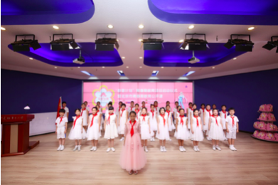 会议开始前,壹号娱乐集团为参会的中关村二小学生带来了礼物,孩子们在翻阅中如同找到知己一般,喜悦溢于言表,因为她们看到了可爱的爱心大使元七七同学。当嘹亮的歌声响起,学生代表们在国旗下歌唱、宣言,散发出阵阵青春朝气,也预示着发布会开始。